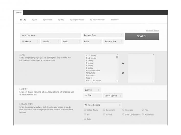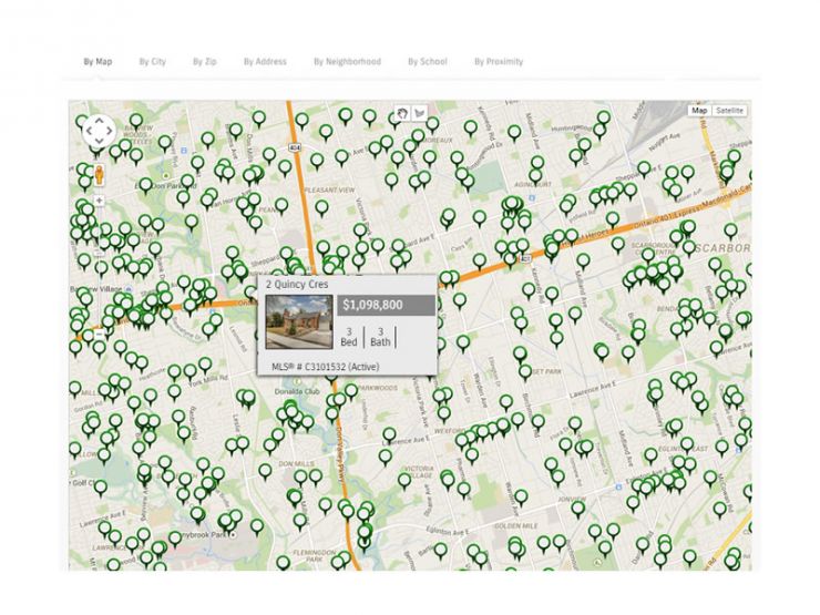 Search by City, Zip, Map, School, Proximity, Neighbourhood and Address for your perfect property! Clients can search for listings any way they want.