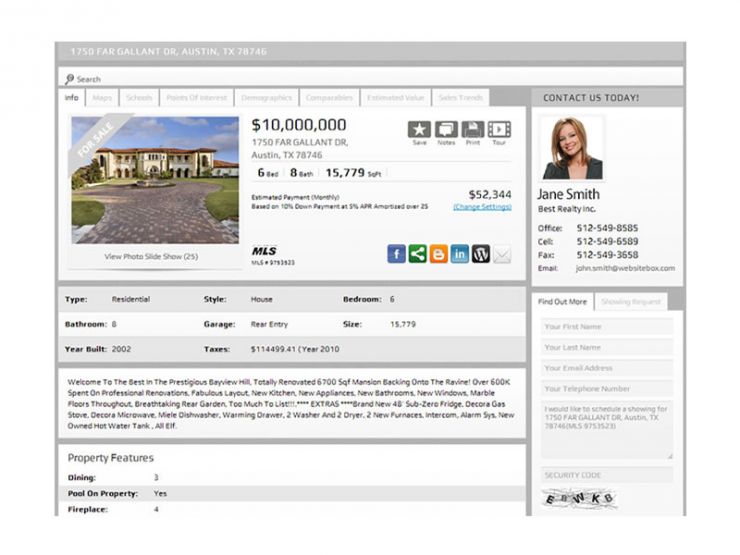 Ready-to-use customized content for any real estate use – includes single property, neighborhood, rental, condo, commercial and general residential content selections.